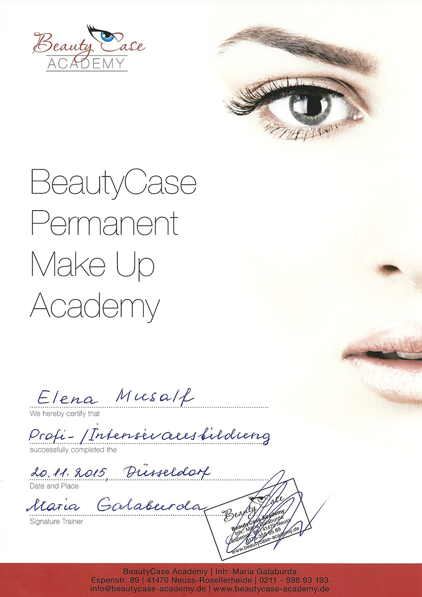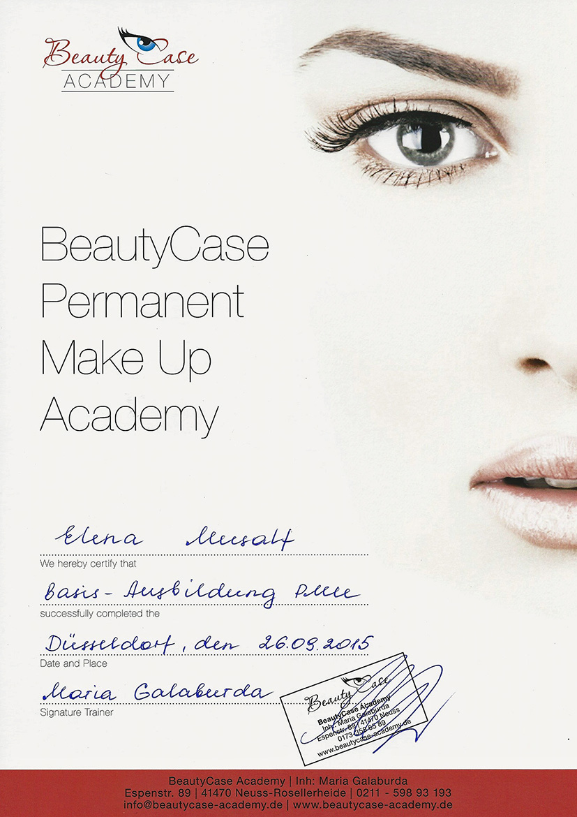 Im Jahr 2018 habe ich die PigmentOff-Remover-Methode zur Entfernung vom misslungenen Permanent Make-up & Microblading (ohne Einsatz von Laser) erlernt.
